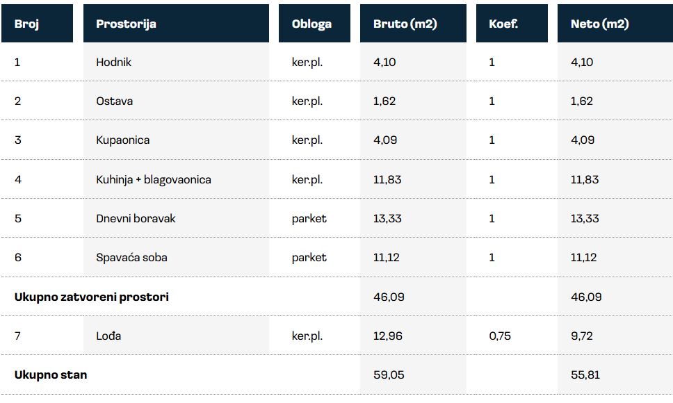 Stambena površina: 59.05