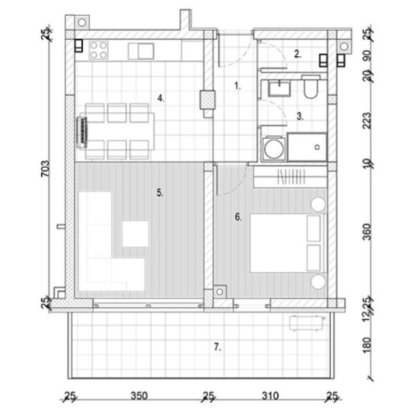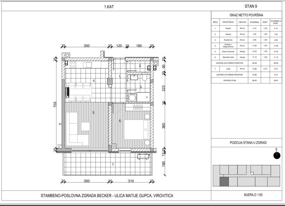 Predstavljamo Vam ponudu dvosobnog stana br.9 na 1 katu, netto površine 55.81m2.